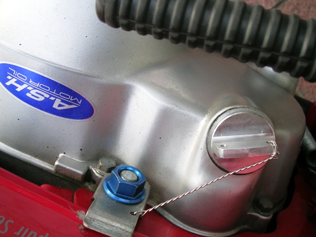 サイドスタンドが外れないようにゴムバンドで固定されてます。